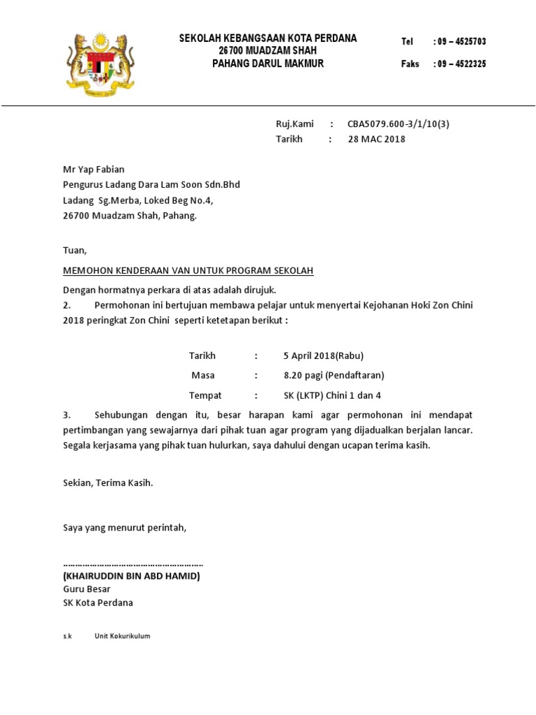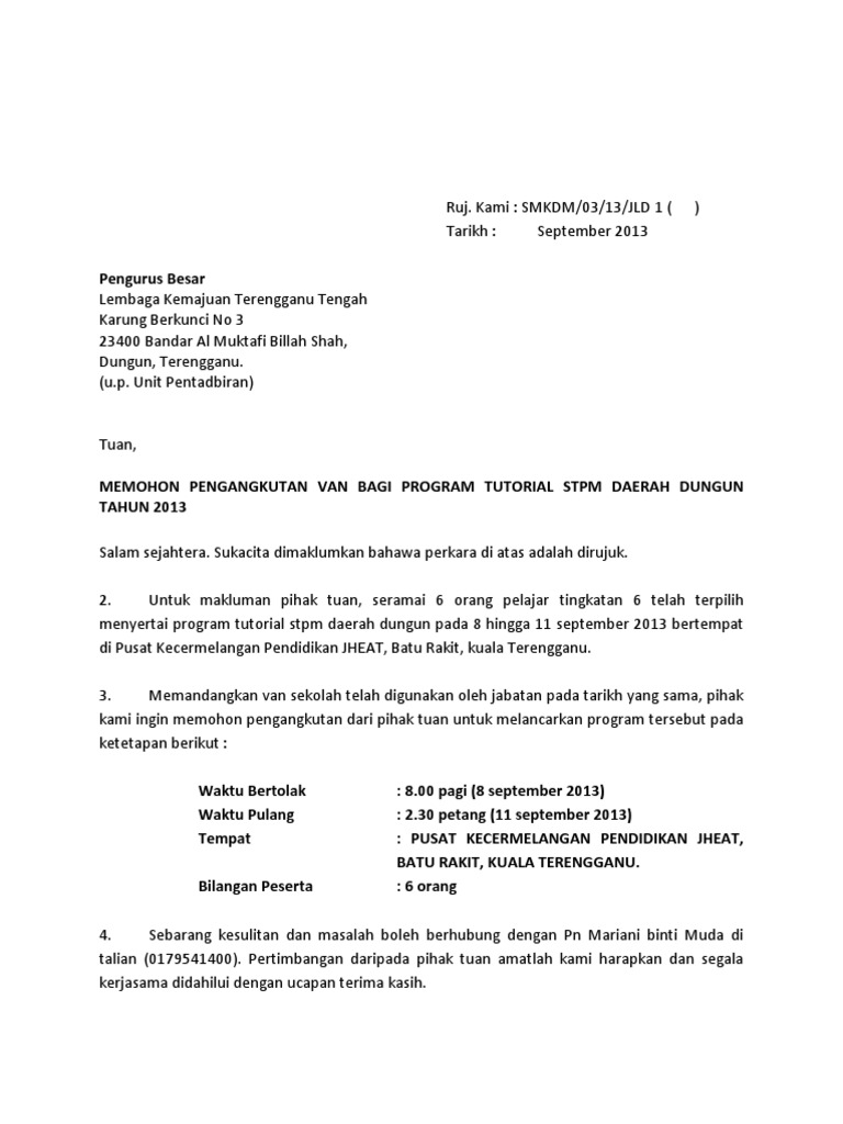 Contoh Surat Permohonan Van